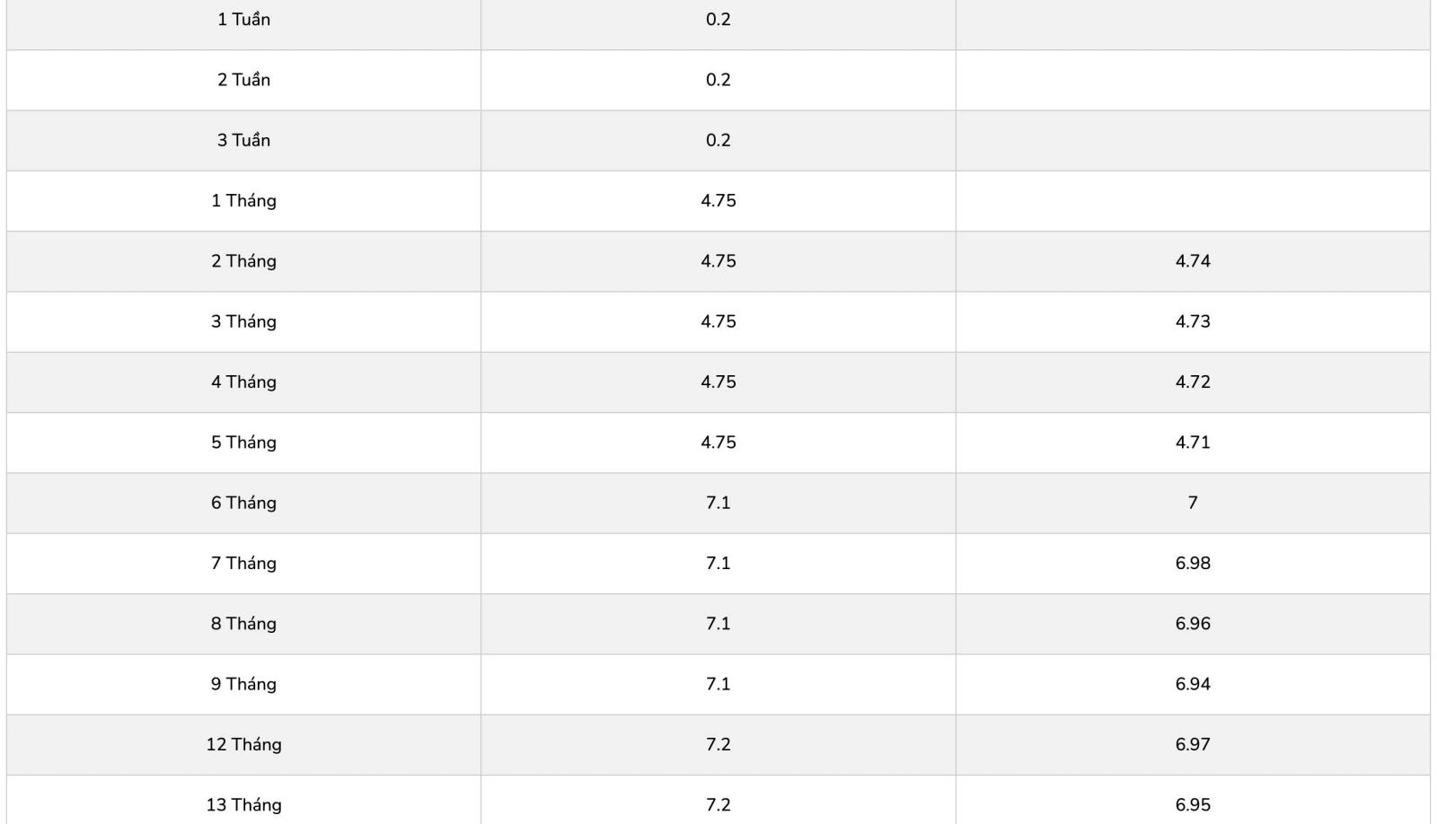 Vikki Bank đang niêm yết lãi suất cao nhất kỳ hạn 6 tháng ở mức 6,5%/năm khi khách hàng gửi tiền online, lĩnh lãi cuối kỳ. Kỳ hạn cao nhất đơn vị này đang niêm yết lãi suất là 13 tháng, ở mức 6,7%.