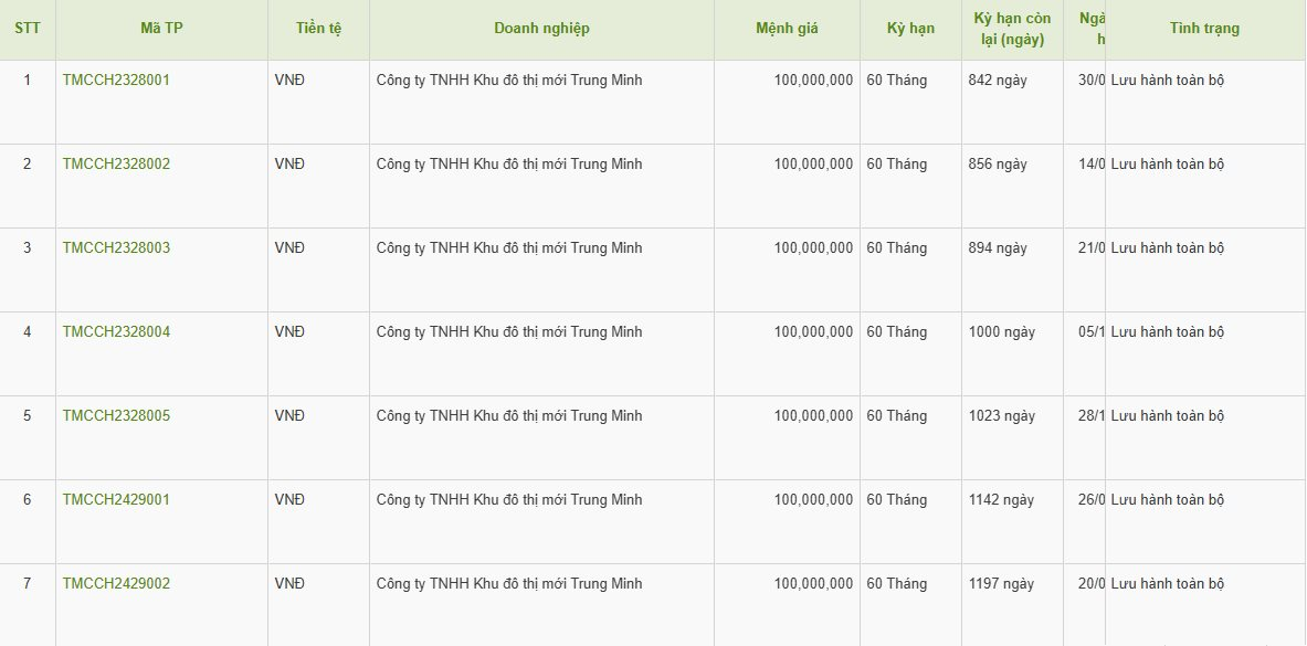 Theo dữ liệu từ HNX, công ty đang lưu hành 7 lô trái phiếu, với tổng giá trị 3.000 tỷ đồng.