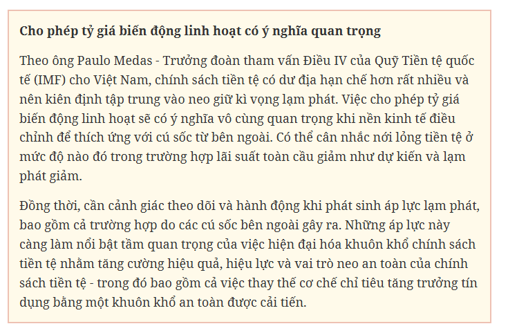 Ngoài ra, việc thực hiện chính sách tiền tệ mở rộng (cung tiền M2 và tăng trưởng tín dụng), cùng với áp lực chi thường xuyên và tăng đầu tư công sẽ làm rủi ro mất giá đồng Việt Nam tăng lên, rủi ro nợ xấu cũng tăng. Thêm vào đó, cán cân thanh toán xấu đi từ cuối năm 2024 khiến dự trữ ngoại hối của Việt Nam đang trong giới hạn rủi ro. Nếu như có những bất ổn toàn cầu kéo dài, tỷ giá giữa đồng Việt Nam với các ngoại tệ khác tiếp tục gây áp lực chi phí đẩy, sẽ tạo áp lực lạm phát cuối năm.