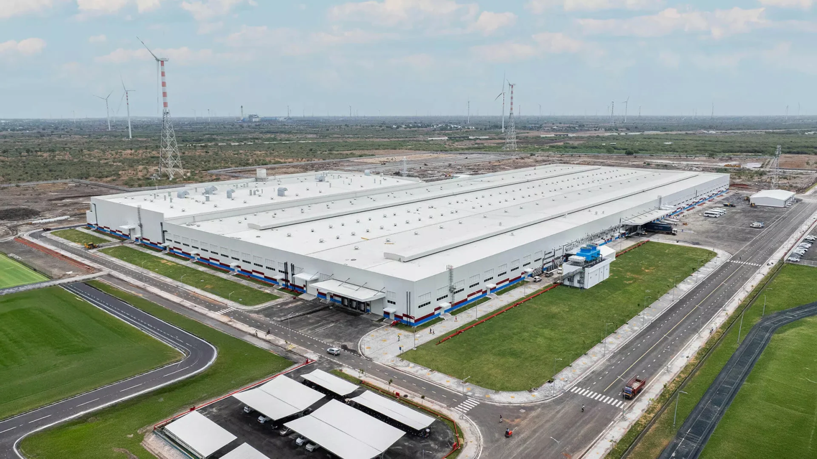 Nhà máy VinFast Ấn Độ được xây dựng trên khu đất rộng 400 mẫu Anh với công suất sản xuất 50.000 xe mỗi năm, có thể mở rộng lên 150.000 xe mỗi năm. (Ảnh: VinFast Ấn Độ).