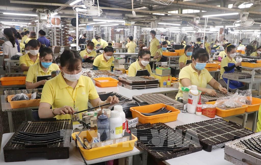 Hoạt động sản xuất tại Công ty TNHH Túi Xách Simone Việt Nam. Ảnh tư liệu: Bùi Giang - TTXVN