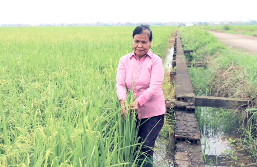 Đầu tháng 5/2024, mưa lớn gây ngập úng, đổ gãy nhiều diện tích hoa màu, lúa của bà con tỉnh Phú Thọ. Để khắc phục, nhiều bà con phải bì bõm dưới ruộng ngập nước mưa đến đầu gối để túm dựng từng gốc lúa đương độ chín bị đổ rạp. Vậy nhưng ruộng lúa của vợ chồng bà Nguyễn Thị Lễ (xã Bản Nguyên, huyện Lâm Thao, tỉnh Phú Thọ) vẫn cứng cáp, xanh tốt, không bị đổ gãy.
