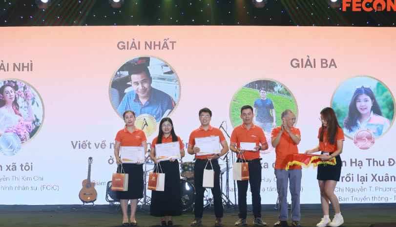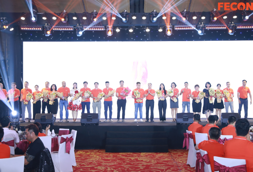 Ban lãnh đạo của FECON trao hoa, cúp vinh danh giải thưởng “Bức chân bạn, Hành trình FECON” cho những cá nhân có thành tích xuất sắc trong công việc.