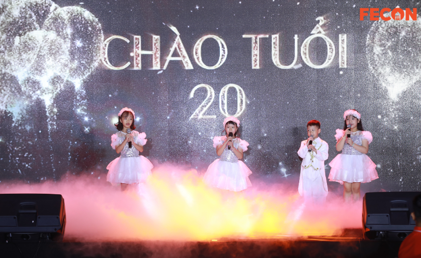 Bên cạnh đó, xuyên suốt chương trình, nhiều tiết mục văn nghệ “cây nhà lá vườn” do các nghệ sĩ không chuyên của FECON thể hiện mừng sinh nhật Tập đoàn và tham dự cuộc thi “Sing for 20”. Những lời ca, tiếng hát, điệu múa của người FECON đã đưa khán giả đi qua thật nhiều cung bậc cảm xúc và cả những bất ngờ.