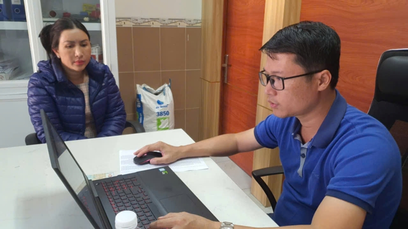 Điều tra viên cơ quan CSĐT Công an tỉnh Đắk Lắk làm việc với đối tượng Nguyễn Thị Cẩm My (Tổng Giám đốc Công ty Cổ phần Thương mại phân bón Nam Dương).