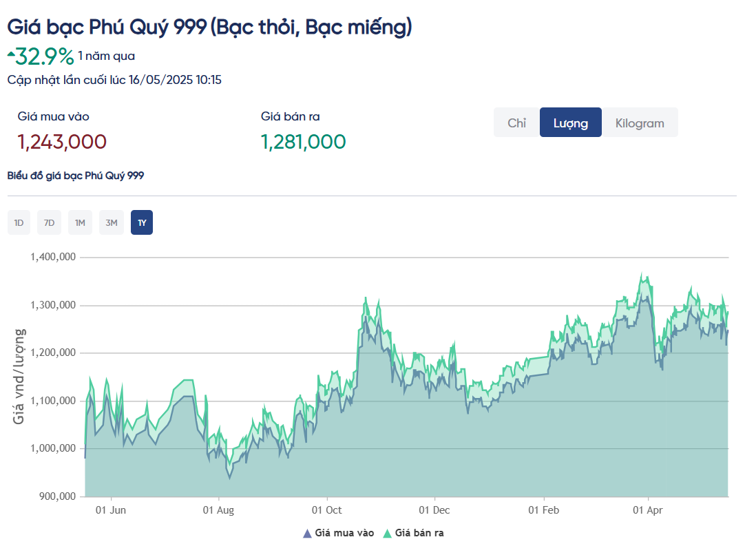 Giá bạc tại Phú Quý đã tăng 32.9% trong 1 năm qua.