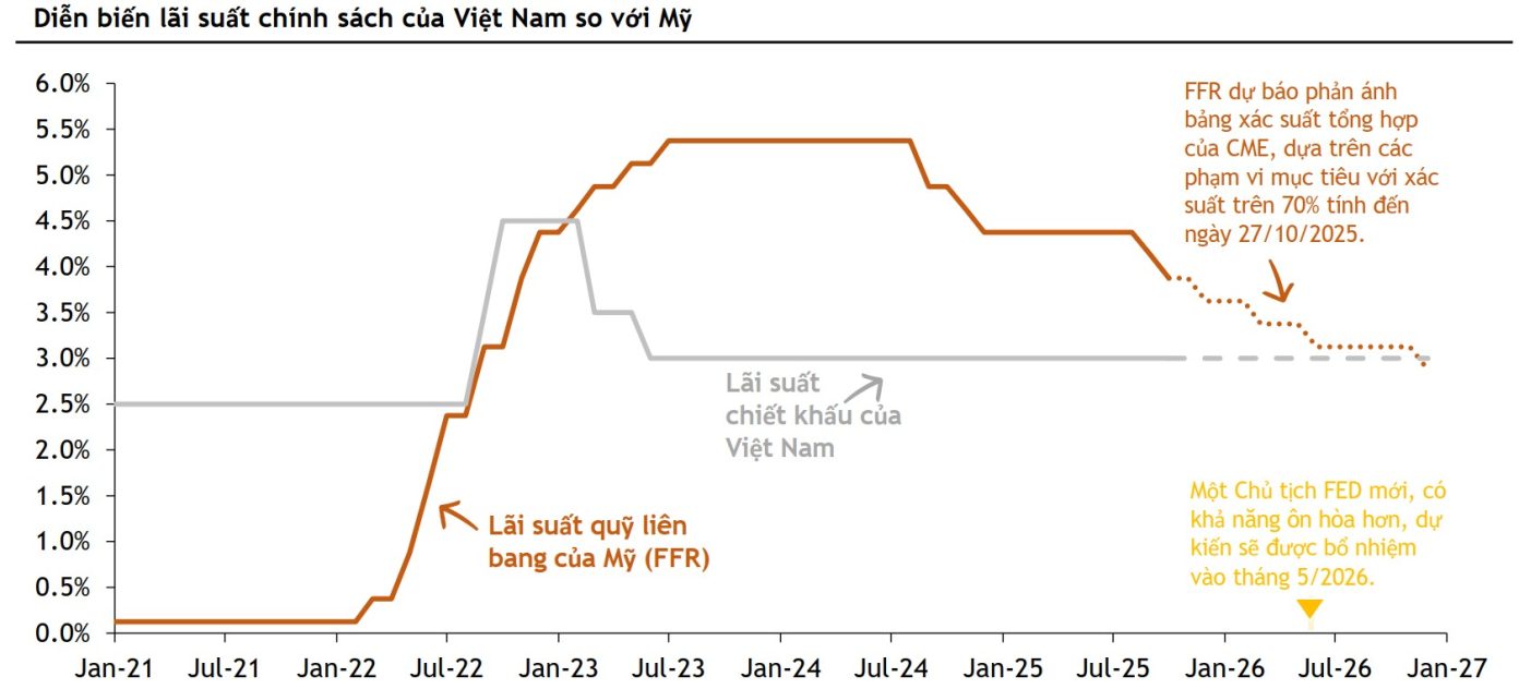 Ở góc nhìn lạc quan hơn, nhóm phân tích Maybank đánh giá NHNN vẫn có cơ sở để duy trì lập trường chính sách nới lỏng. Các điều kiện đi theo là cán cân thương mại, kiều hối và FDI của Việt Nam vẫn ổn định, áp lực tỷ giá hối đoái sẽ giảm bớt hơn nữa theo lộ trình nới lỏng dự kiến của Fed qua cuối năm 2025 và 2026.