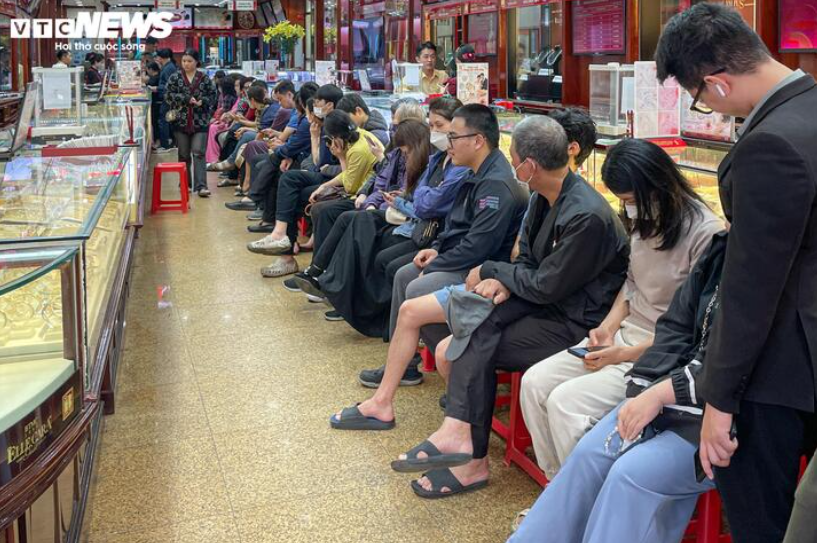 Giá vàng lập kỷ lục khiến nhiều người xếp hàng chờ mua. (Ảnh: Minh Đức)