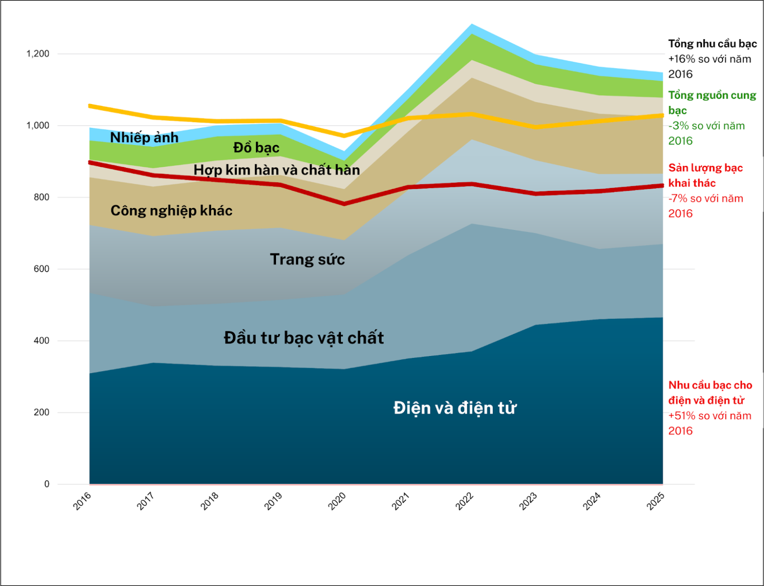 Nguồn: The Silver Institute, Metals Focus, The World Silver Survey 2025
