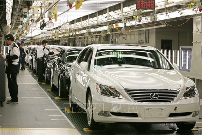Lắp ráp ô tô tại một nhà máy của Toyota, ở Aichi, Nhật Bản. Ảnh: AFP/TTXVN