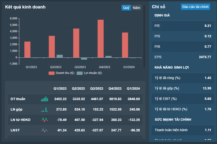 Tình hình khó khăn đã được phản ánh rõ nét trong kết quả kinh doanh Lộc Trời. Do giá vốn hàng bán cao, tỷ giá tăng nhanh... LTG lỗ ròng gần 97 tỷ đồng trong quý 1/2024, tăng so với số lỗ 81 tỷ đồng cùng kỳ 2023, mặc dù doanh thu tăng 57% lên hơn 3,848 tỷ đồng với động lực tăng trưởng chính đến từ mảng gạo. Tuy nhiên, biên lãi gộp mảng gạo mỏng chỉ 3.5% kéo giảm biên lãi gộp chung toàn Công ty từ 11% cùng kỳ xuống 6%.