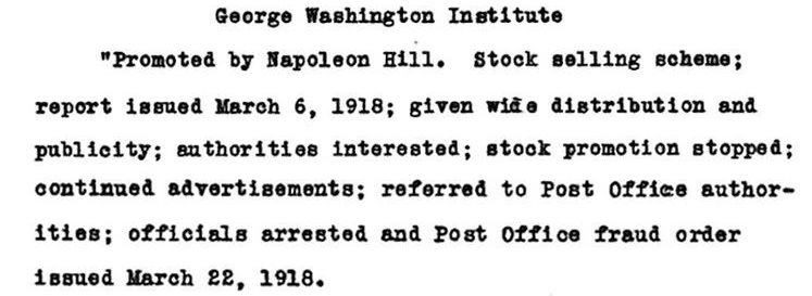Tài liệu nói về vụ lừa đảo của Napoleon Hill tại George Washington Institute