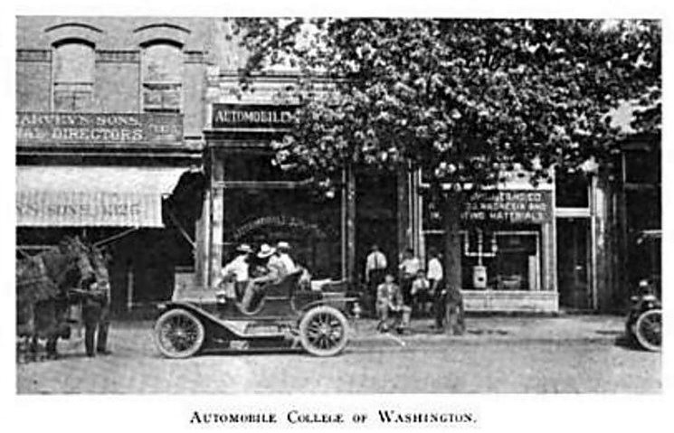 Trên thực tế, Hill đã phải trốn chạy các chủ nợ trong năm 1908. Bước sang năm 1909, ông thành lập nên trường nghề "Automobile College of Washington" với lời quảng cáo tràn ngập trên báo rằng chỉ với 6 tuần đào tạo là có thể biến một người thường thành công nhân lành nghề lắp ráp ô tô, vốn đang cực kỳ thiếu nhân lực.