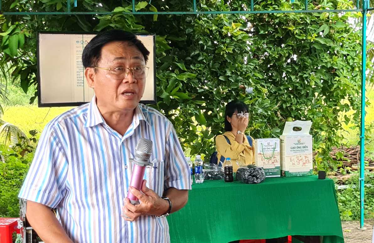 Phó Giám đốc Sở Nông nghiệp Môi trường tỉnh Cà Mau chia sẻ sự thành công của mô hình đồng thời đề nghị HTX, doanh nghiệp cùng nhà nước mở rộng đầu ra, phát triển mô hình sản xuất. Ảnh: Nhật Hồ
