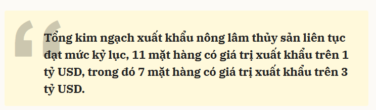Lực lượng doanh nghiệp tăng mạnh, với trên 18.700 doanh nghiệp trực tiếp đầu tư sản xuất nông nghiệp. Nhiều doanh nghiệp, tập đoàn lớn khẳng định vai trò nòng cốt trong chuỗi giá trị, trung tâm thúc đẩy nông nghiệp phát triển.