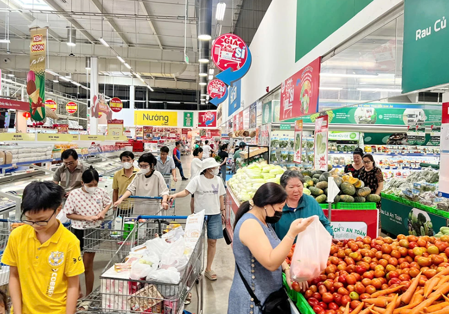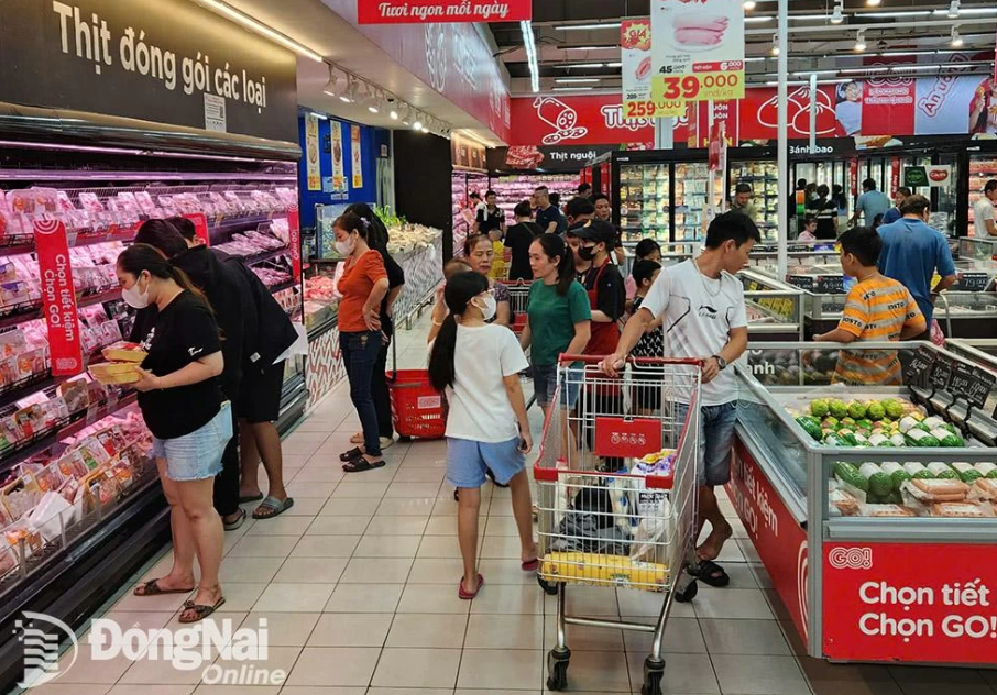 Khá đông người tiêu dùng đến tham quan, mua sắm tại một siêu thị ở thành phố Biên Hòa trong kỳ nghỉ lễ Quốc khánh (2-9). (Ảnh: Hải Quân)