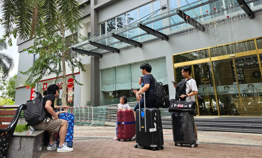 Các du khách chờ đến giờ vào lưu trú tại một chung cư ở TP.HCM - Ảnh: HIẾU GIANG