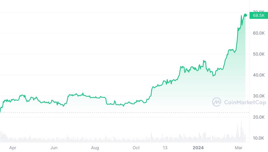 Theo dữ liệu từ trang Coinmarketcap.com, giá bitcoin vào lúc gần 9h sáng nay (11/3) theo giờ Việt Nam giao dịch ở mức gần 67.900 USD. Tuy đã giảm từ mức kỷ lục hơn 70.000 USD thiết lập hôm thứ Sáu, giá bitcoin hiện vẫn tăng gần 60% từ đầu năm đến nay.