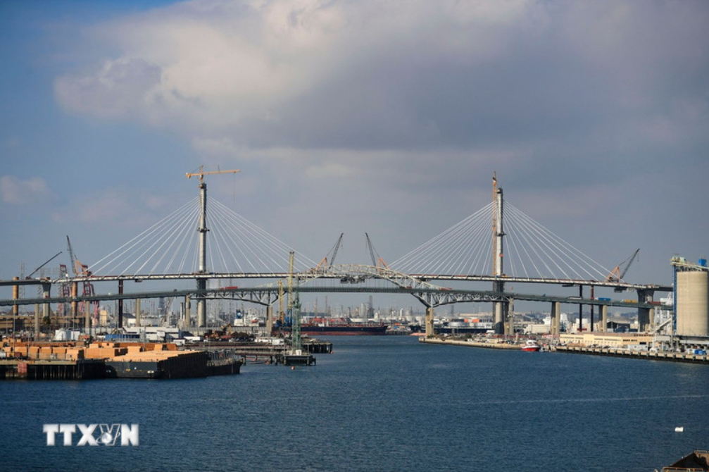 Quang cảnh cảng hàng hóa Long Beach, California (Mỹ). (Ảnh: THX/TTXVN)