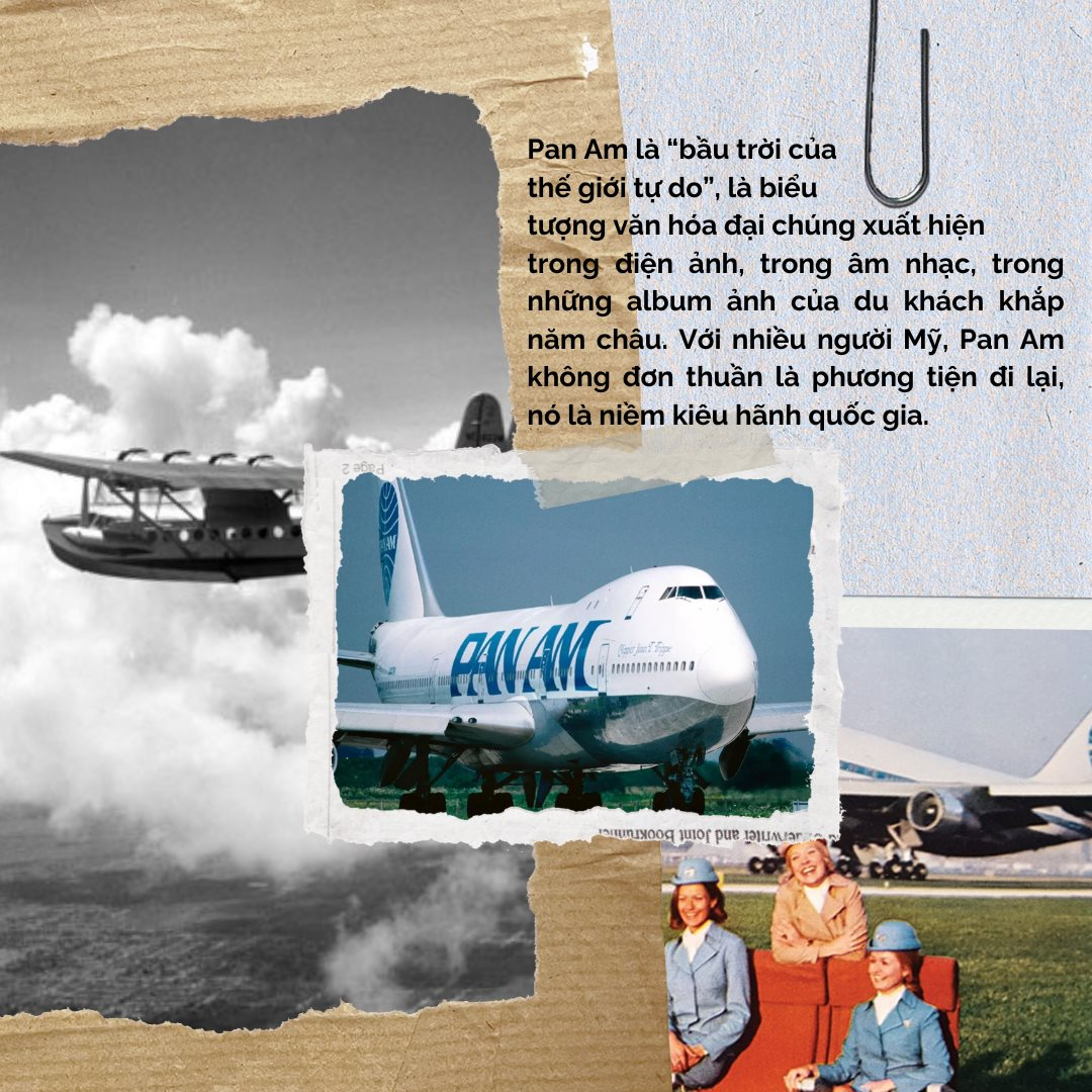 Trong suốt nửa đầu thế kỷ XX, cái tên Pan Am gắn liền với hình ảnh chiếc máy bay trắng xanh mang biểu tượng địa cầu, mang theo ước mơ chinh phục bầu trời của con người. Nhiều người Mỹ lớn tuổi vẫn nhớ như in khoảnh khắc đứng bên cửa kính sân bay, ngước nhìn những chiếc Boeing 707 hay 747 của Pan Am khởi động động cơ, rồi chậm rãi lăn bánh ra đường băng với vẻ sang trọng và quyền lực đến nao lòng.