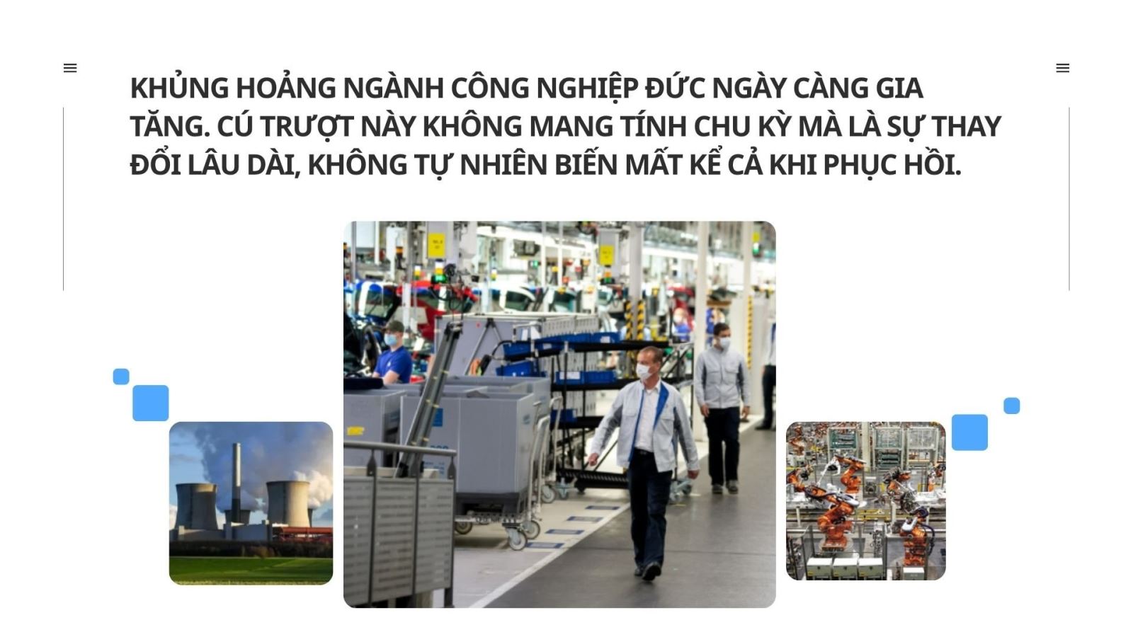 Công nghiệp từ lâu được coi là trụ cột kinh tế Đức, chiếm gần 28 – 29% GDP của “anh cả” châu Âu (World Bank). Xuất khẩu hàng hóa và dịch vụ, phần lớn là sản phẩm công nghiệp như máy móc và ôtô, đóng vai trò trọng yếu, chiếm khoảng 44% GDP và biến ngành công nghiệp thành xương sống của cán cân thương mại Đức. Tuy nhiên, trong bối cảnh căng thẳng địa chính trị và cạnh tranh toàn cầu gay gắt, ngành công nghiệp Đức đang trên đà suy yếu chưa từng có.