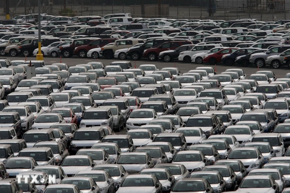 Ôtô nhập khẩu tại cảng Long Beach ở California, Mỹ. (Ảnh: Getty Images/TTXVN)