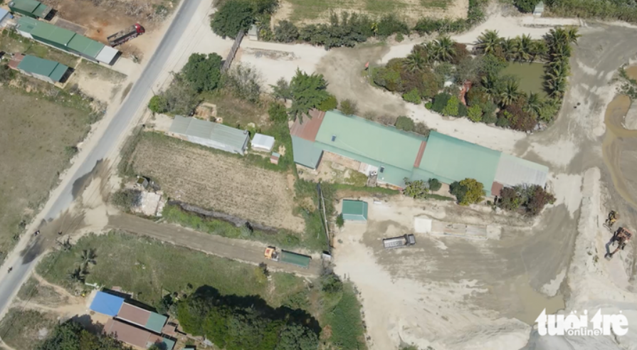 Chẳng có hoạt động sửa chữa nào trong "gara sửa xe" của Doanh nghiệp tư nhân Văn Hồng, nhưng cát thì vẫn chất đống