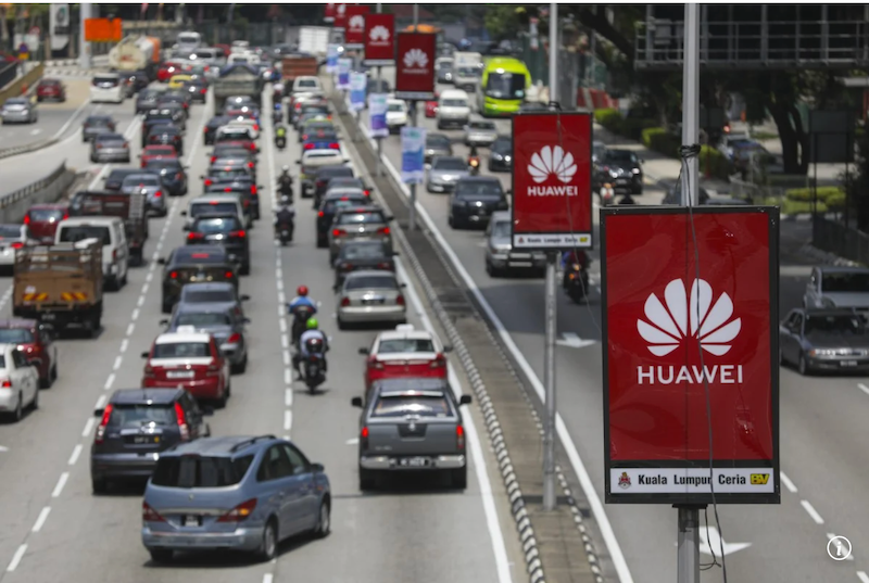 Logo công ty Huawei Technologies Co của Trung Quốc trên đường phố ở Kuala Lumpur, Malaysia. Ảnh: EPA-EFE
