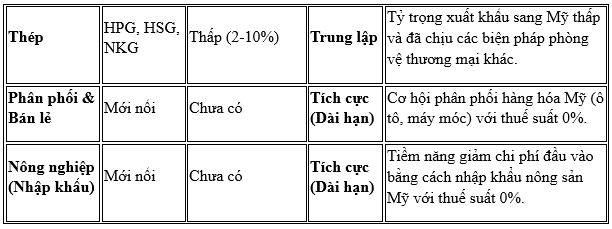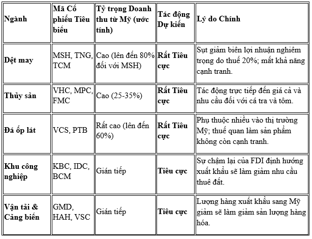 • Phân hóa Cổ phiếu và Dòng tiền: Thỏa thuận tạo ra sự phân hóa sâu sắc giữa các nhóm ngành, được thể hiện trong ma trận tác động dưới đây.