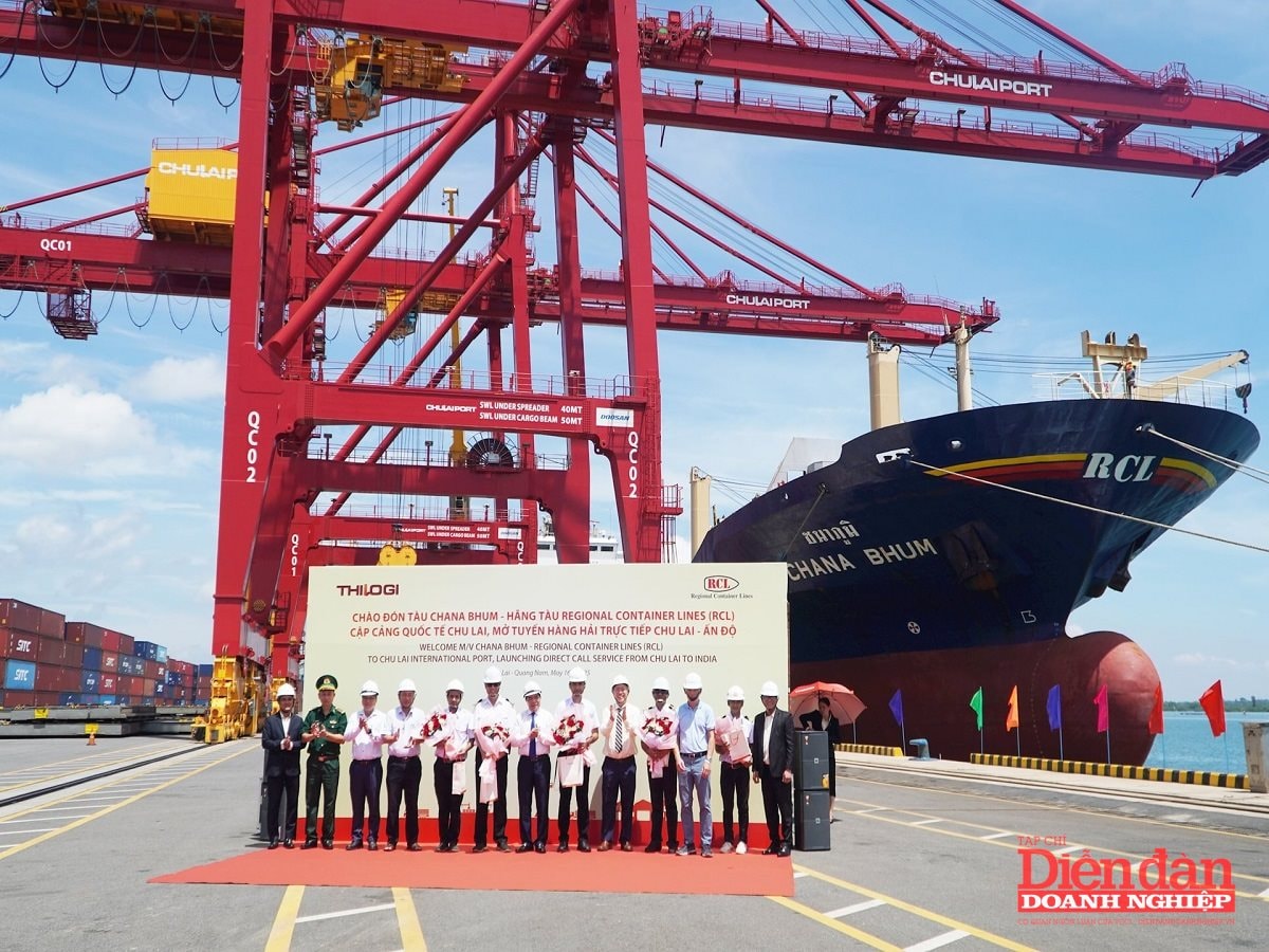 THILOGI (Tập đoàn THACO Trường Hải) vừa tổ chức lễ công bố hoàn thành nạo vét luồng hàng hải Kỳ Hà và ký kết hợp tác giữa hãng tàu Regional Container Lines (RCL) với cảng quốc tế Chu Lai, mở tuyến hàng hải trực tiếp Chu Lai - Ấn Độ.