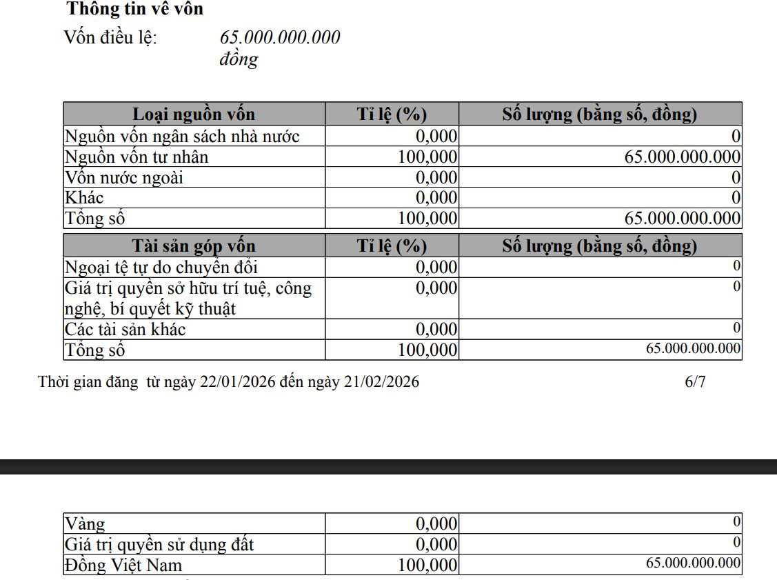 Vốn điều lệ của doanh nghiệp giảm từ 1.000 tỷ đồng còn 65 tỷ đồng, tương đương 6,5%.