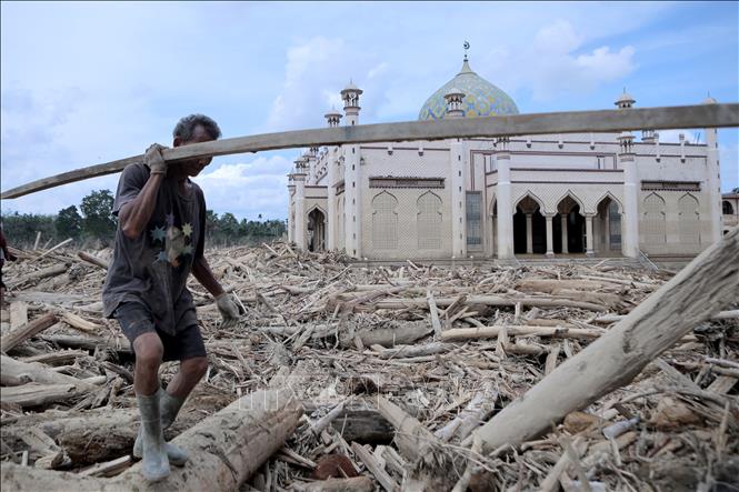 Cảnh tàn phá do lũ lụt và lở đất tại Aceh, Indonesia ngày 10/12/2025. Ảnh minh họa: THX/TTXVN