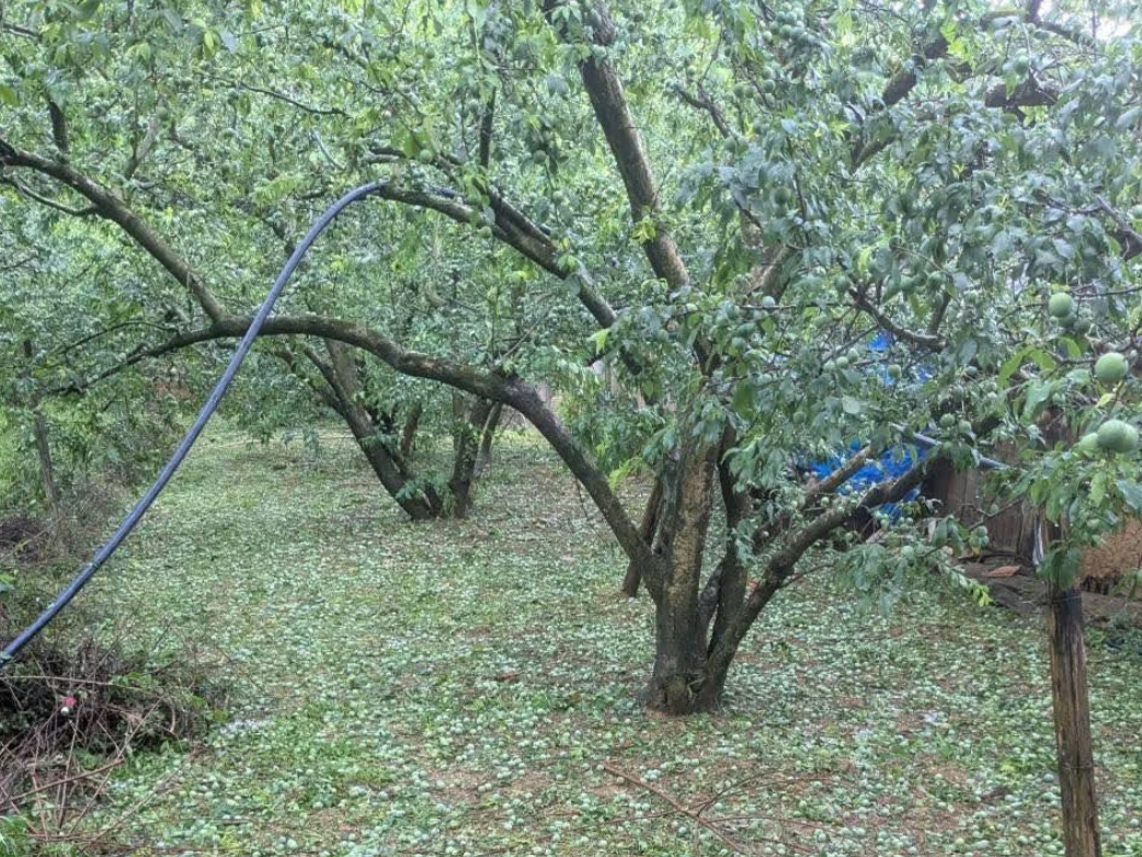 Trận mưa đá xảy ra trong thời gian ngắn nhưng cường độ lớn, kèm gió mạnh khiến cây trồng bị gãy cành, hư hại trên diện rộng. Nhiều vườn mận đang thời kỳ đậu quả bị dập nát, rụng quả hàng loạt, ảnh hưởng trực tiếp đến hoạt động sản xuất nông nghiệp của người dân.