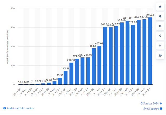 Nếu tính từ đầu năm đến nay, con số này là hơn 1 tỷ USD trong khi năm 2023, TikTok thu về đến hơn 2 tỷ USD doanh thu IAP, luôn giữ vị trí số 1 trên bảng xếp hạng của Appmagic.