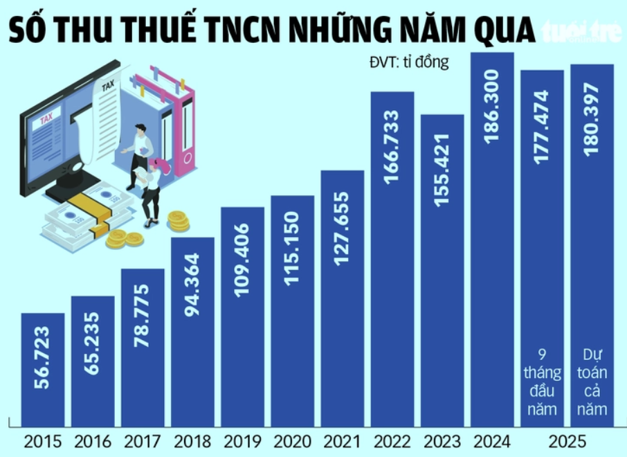 Thuế TP.HCM cho hay lũy kế đến ngày 25-12-2025, nơi này đã thực hiện hoàn thuế thu nhập cá nhân với tổng số tiền 1.311 tỉ đồng, trong đó hồ sơ đã hoàn tự động là 86.629 hồ sơ với số tiền hoàn thuế trên 379 tỉ đồng, chiếm 59,69% tổng số hồ sơ đã hoàn và 28,91% tổng số thuế thu nhập cá nhân được hoàn.