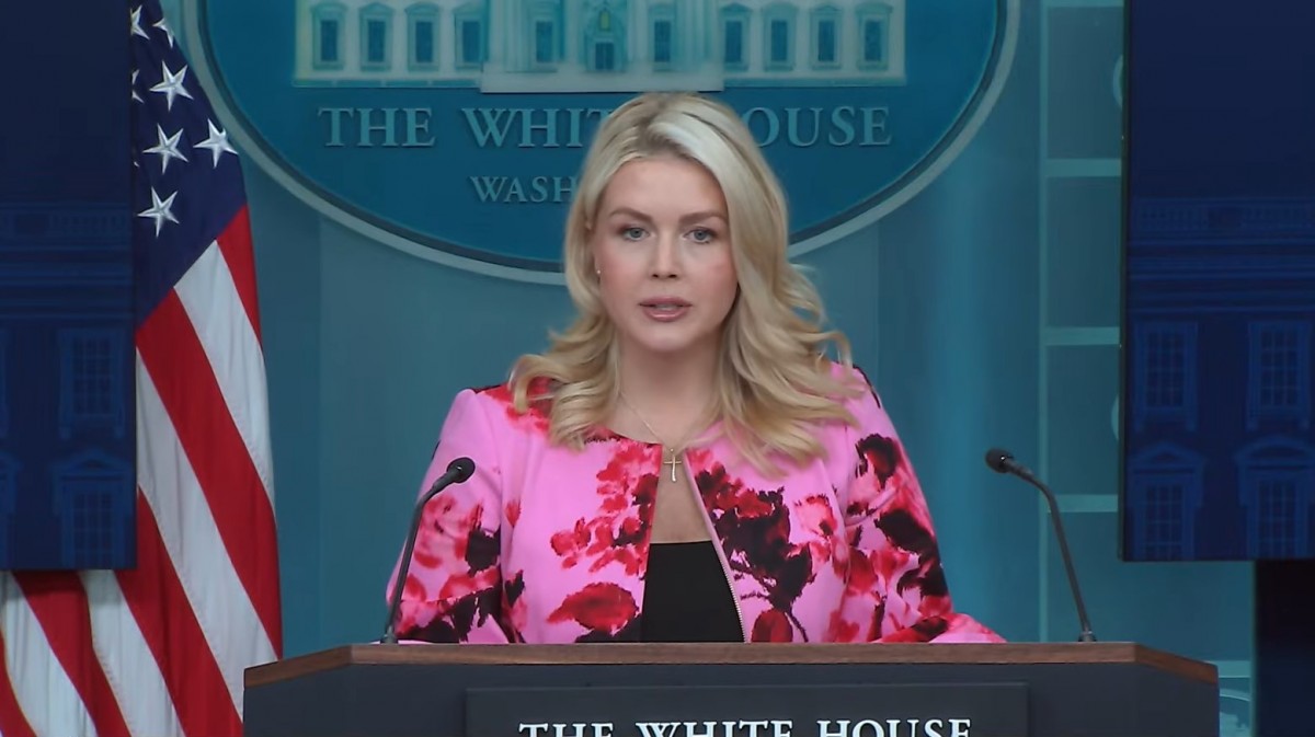 Thư ký Báo chí Nhà Trắng Karoline Leavitt tại buổi họp báo ngày 30/3 giờ địa phương. Ảnh chụp màn hình