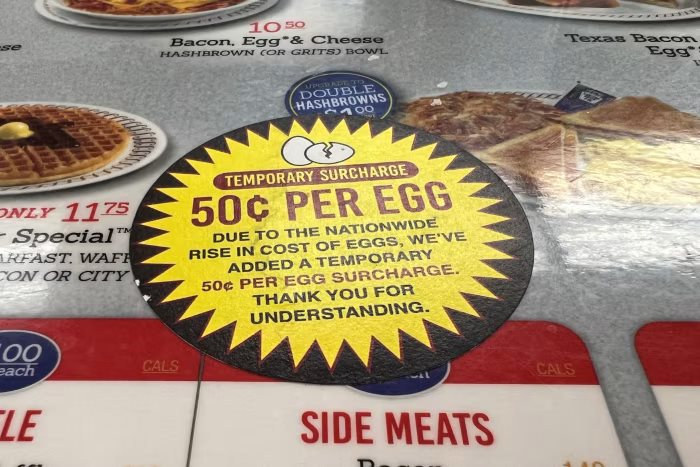 Giá trứng tăng cao khiến hàng loạt siêu thị như Walmart và Kroger phải tích cực trữ hàng, qua đó tiếp tục đẩy giá sản phẩm bình dân này tăng cao. Thậm chí chuỗi The Waffle House đã phải thu phụ phí 50 cent cho mỗi quả trứng gà.