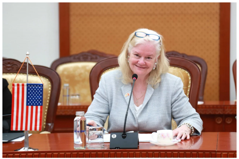 Phó Trợ lý Ngoại trưởng Mỹ bà Ann K. Ganzer phát biểu tại cuộc gặp với Thứ trưởng Bộ Tài chính Đỗ Thành Trung. Ảnh: Thời báo Tài chính Việt Nam