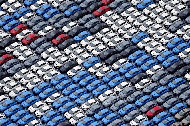 Ô tô chờ xuất khẩu tại cảng ở Yokohama, Nhật Bản. Ảnh: Kyodo/TTXVN