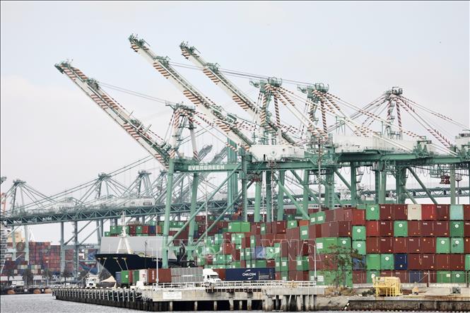 Cảng hàng hóa Los Angeles, bang California, Mỹ. Ảnh: THX/TTXVN