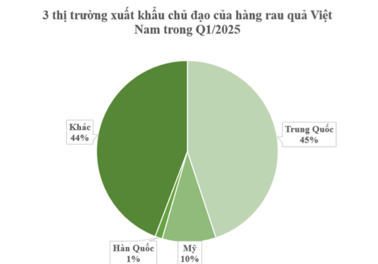 Năm 2024, xuất khẩu rau quả sang Mỹ của Việt Nam đạt 360 triệu USD, trong khi Việt Nam nhập khẩu từ Mỹ 540 triệu USD, tức cán cân thương mại đang nghiêng về Mỹ. Trạng thái xuất siêu tiếp tục duy trì trong quý 1 khi Việt Nam nhập khẩu từ Mỹ hơn 160 triệu USD.