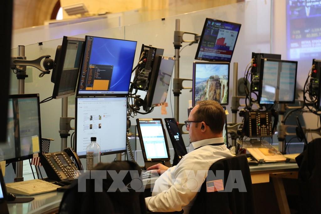 Giao dịch viên tại sàn chứng khoán New York, Mỹ. Ảnh: THX/TTXVN