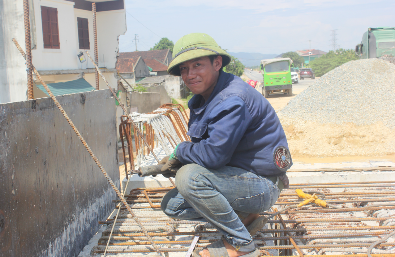 Dưới nắng như thiêu, công nhân vẫn cắm cúi làm việc. Anh Trần Văn Lượng, công nhân san lấp nền, bộc bạch: Nóng mấy cũng quen rồi. Quan trọng là làm cho xong để người dân đi lại đỡ vất vả.