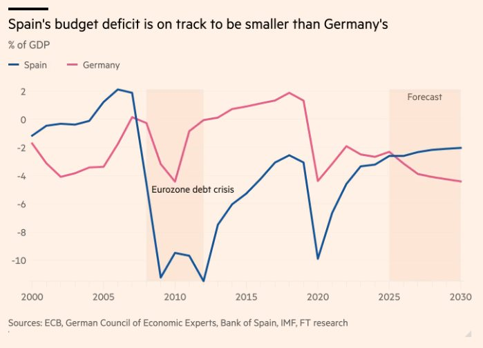 Tây Ban Nha hiện phải trả chi phí vay thấp hơn Pháp - quốc gia lâu nay được xem là đối tượng vay an toàn trong Eurozone. Dù thâm hụt dự kiến tăng, trái phiếu của Đức vẫn được coi là tài sản trú ẩn của khu vực nhờ quy mô kinh tế lớn và gánh nặng nợ thấp hơn nhiều nước khác, bao gồm cả Mỹ.