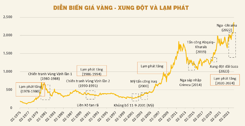 Thứ ba, giá vàng biến động rất khó lường và chịu nhiều yếu tố tác động, do đó nếu chỉ lo lắng về vấn đề xung đột địa chính trị để mua vàng thì sẽ chưa hợp lý. Cụ thể, tương quan giữa biến động giá vàng và các cuộc xung đột địa chính trị từ năm 1975 đến nay là rất yếu. Điều này có nghĩa là, giá vàng không chịu tác động nhiều bởi các cuộc xung đột địa chính trị.