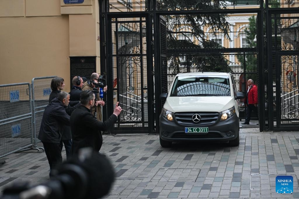 Xe chở phái đoàn Mỹ có mặt tại địa điểm đàm phán ở Istanbul, Thổ Nhĩ Kỳ (Ảnh: Tân Hoa xã).