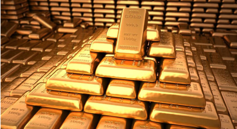 Hình ảnh các thỏi vàng xếp chồng thành hình kim tự tháp. Ảnh: IntelliNews