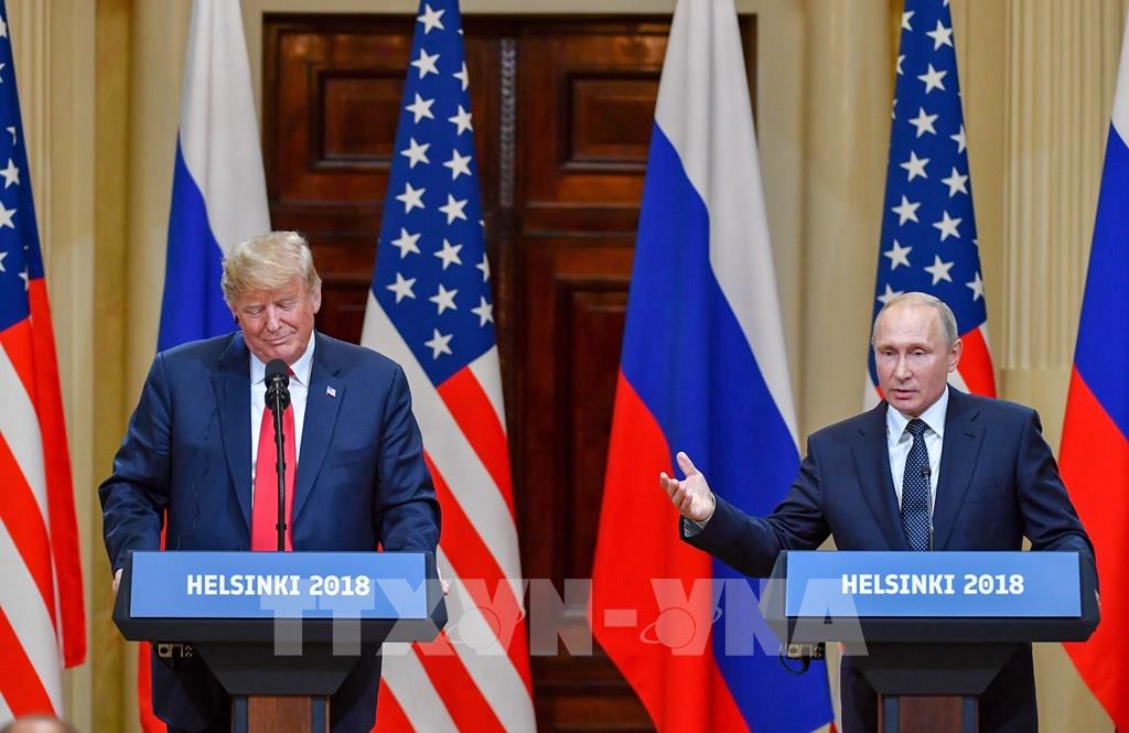 Tổng thống Mỹ Donald Trump (trái) và Tổng thống Nga Vladimir Putin trong cuộc họp báo chung sau hội nghị thượng đỉnh ở Helsinki, Phần Lan ngày 16/7/2018. Ảnh tư liệu: AFP/ TTXVN