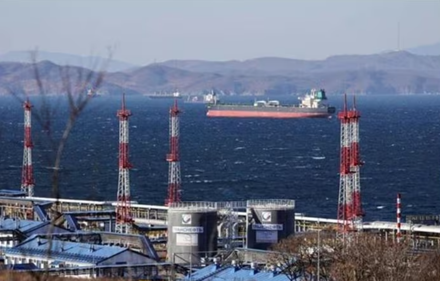 Tàu chở dầu thô Fuga Bluemarine neo đậu ở Vịnh Nakhodka. (Ảnh: Reuters)
