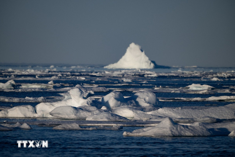 Băng tan do nhiệt độ ấm lên tại đảo Greenland thuộc Bắc Cực, ngày 16/8/2023. (Nguồn: AFP/TTXVN)